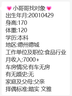 下方有资料照片,挡脸的可以找我看照片哦,相中的私聊我介绍认识01