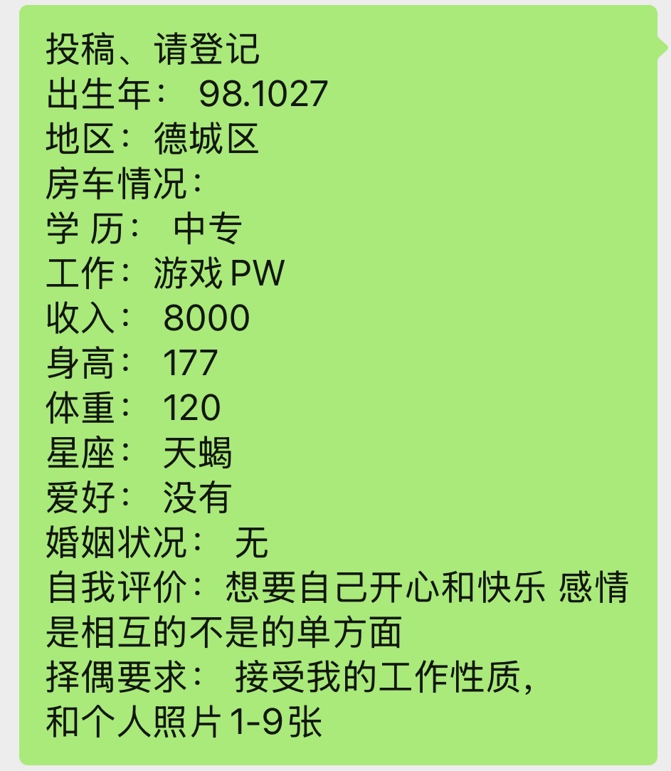 下方有资料照片,挡脸的可以找我看照片哦,相中的私聊我介绍认识98-德城区-九儿脱单基地