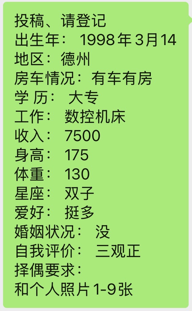 下方有资料照片,挡脸的可以找我看照片哦,相中的私聊我介绍认识98-德城区-九儿脱单基地