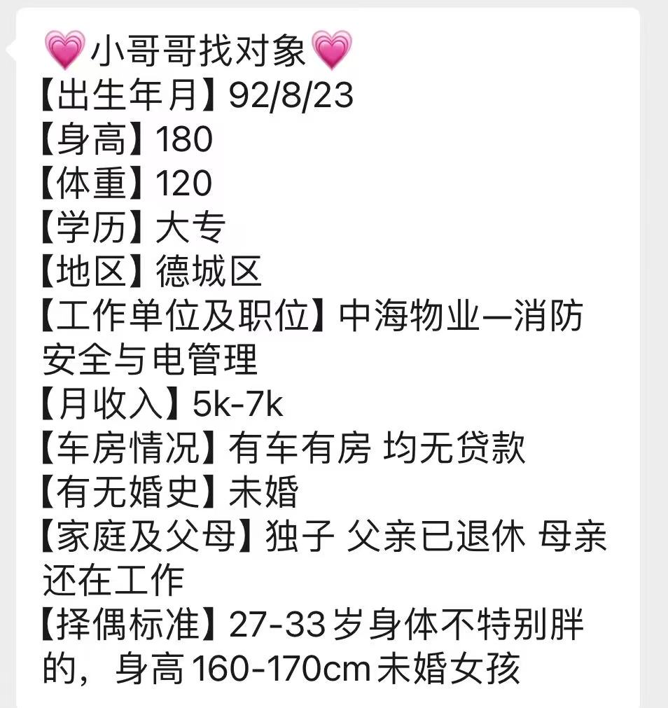德州德城区92的小哥哥找对象啦,消防安全与电管理,月收入5000到7000左右,有房有车都没有贷款,相中的私聊我介绍哦-德城区-九儿脱单基地