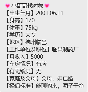 下方有资料照片,挡脸的可以找我看照片哦,相中的私聊我介绍认识01
