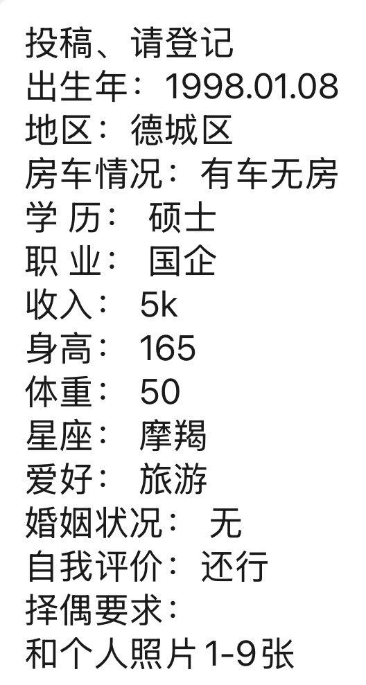 下方有资料照片,挡脸的可以找我看照片哦,相中的私聊我介绍认识98-德城区-九儿脱单基地