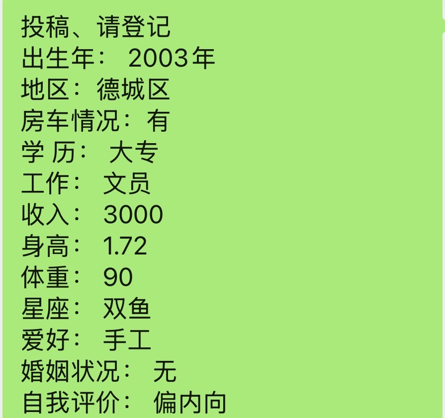 下方有资料照片,挡脸的可以找我看照片哦,相中的私聊我介绍认识03-德城区-九儿脱单基地